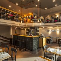Onkel Ba kocht asiatisch und französisch. Da liegt es nahe diesen ungewöhnlichen Mix auch im Design aufzugreifen. Einfache Holzjalousien und schlichte Tische wechseln sich ab mit hochwertigen Lederbänken und der schlichten Eleganz industrieller Glühbirnen-Lampen á la Thomas Edison. Eine Hommage an die Gründerzeit und die Bohéme des alten Paris. Der Frankfurter Stuhl präsentiert sich schlicht auf den glasierten Fliesen. Ein holzgraues Material-Ensemble das in Casablanca Rick’s Café heißen würde.